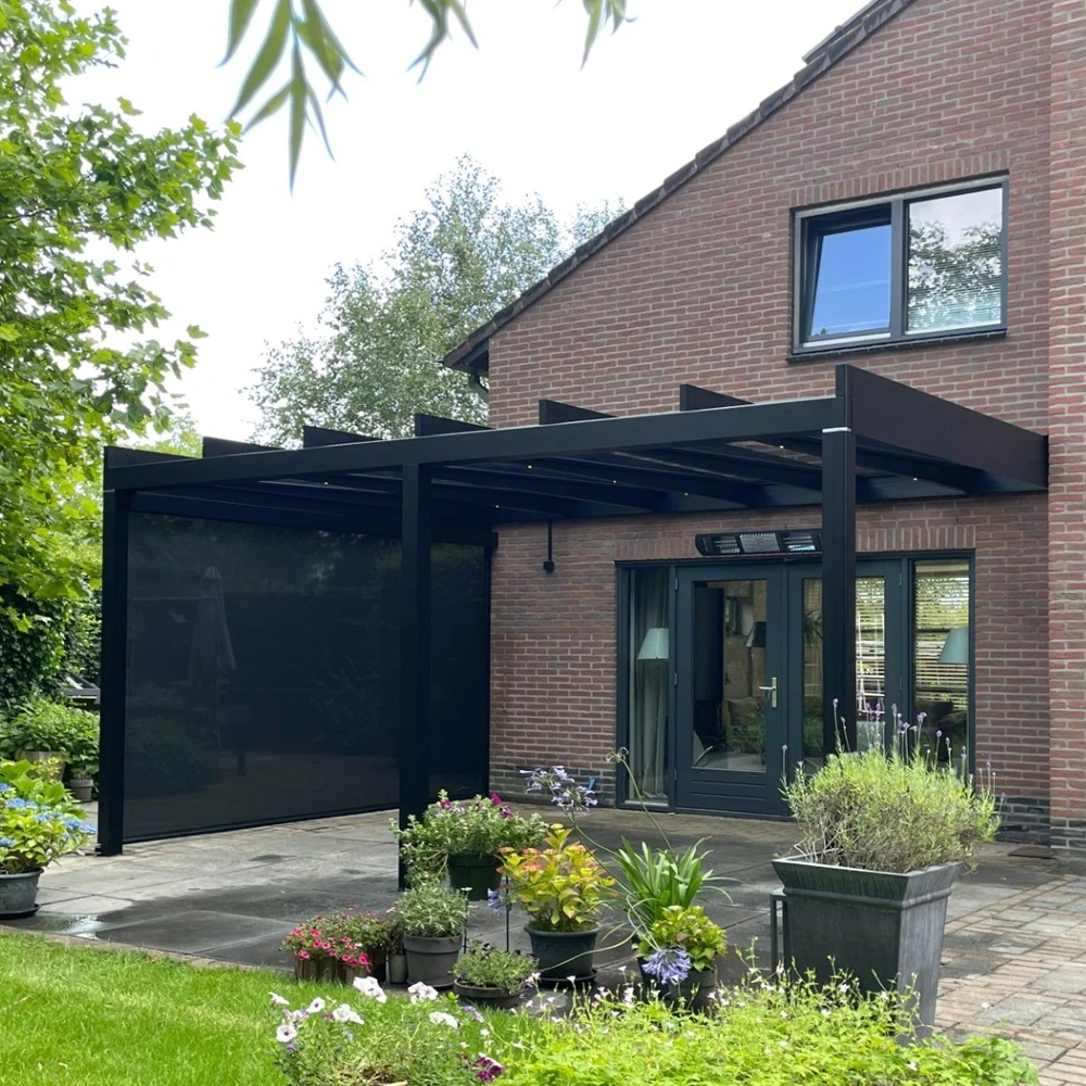 • Veldman Zonwering textieloverkapping met beschutte zijwanden in Donkerbroek