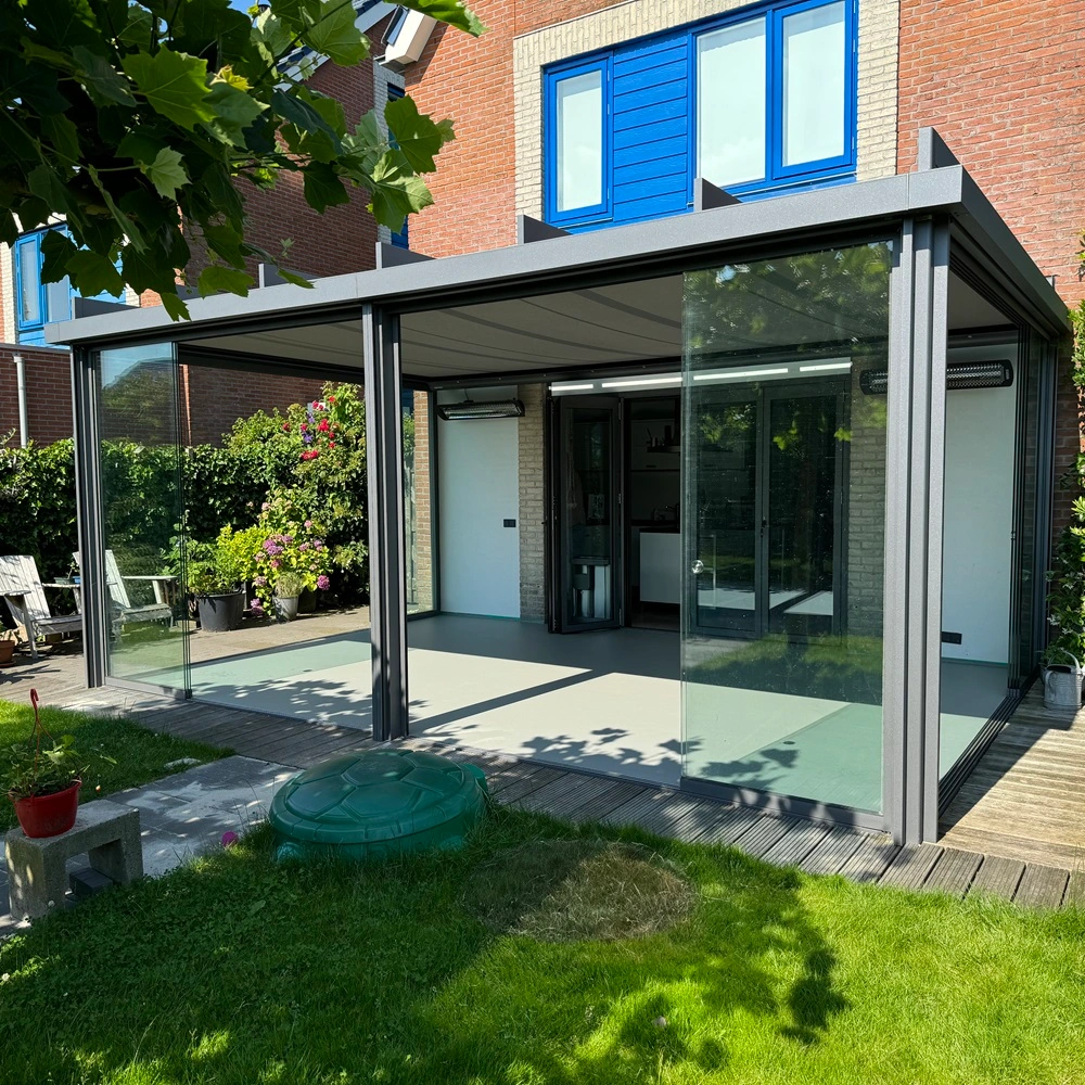 Beeld je eens in: een elegante tuinkamer die jouw terras omtovert tot een serene plek, waar je ongeacht het weer kunt genieten van het buitenleven. De Terrazza Pure biedt dit alles met een verfijnd, strak design en ongeëvenaarde duurzaamheid. Dankzij het moderne kubische glazen dak blijf je beschut tegen de elementen, zonder in te leveren op het zicht of de sfeer.