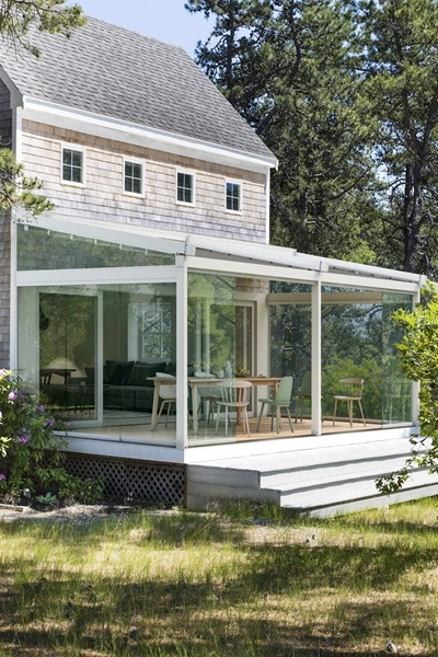 Tuinkamer Viva met glazen schuifwanden aan een huis in bosrijke omgeving