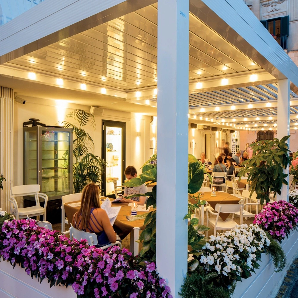 Energiezuinige, efficiënte en hoogwaardige accessoires, geïntegreerd in de structuren van onze horeca-oplossingen. De intensiteit van het verstelbare licht via een dimmer geeft een persoonlijk tintje aan elke horecaomgeving, variërend van sfeervolle sensaties tot optimaal comfort. Verschillende versies zijn beschikbaar, aangepast aan de specifieke behoeften van de horeca. Het licht is eenvoudig te verstellen via een dimmer met afstandsbediening.