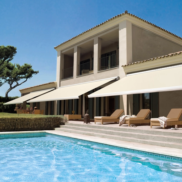 Onze zon- en regenschermen zijn vervaardigd uit hoogwaardige materialen zoals waterafstotend pvc en gehard aluminium. Ze bieden niet alleen veiligheid, maar geven ook een prachtige en klassieke uitstraling aan de gevel. Ongeacht blootstelling aan zon, regen of wind, blijven ze jarenlang hun esthetische waarde behouden.